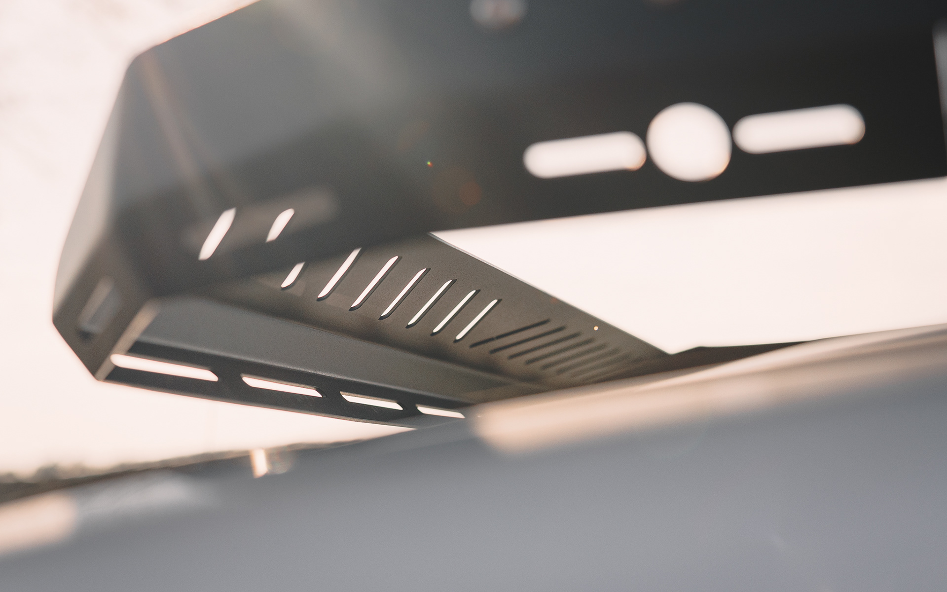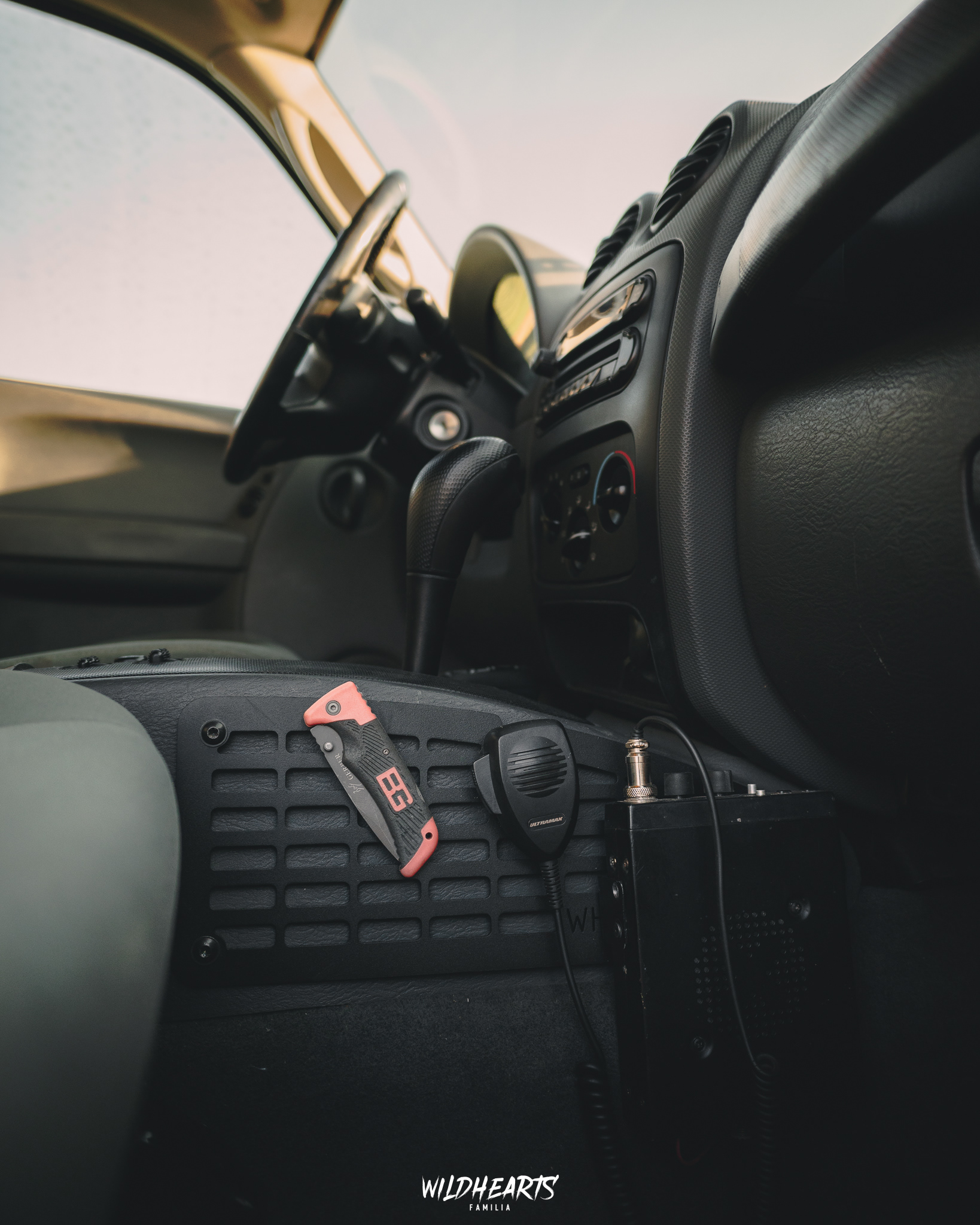 Grodź od strony kabiny podobnie jak dolna część półki również posiada wzór MOLLE/PALS. Tylna krawędź logowana oraz wykończona uszczelką.