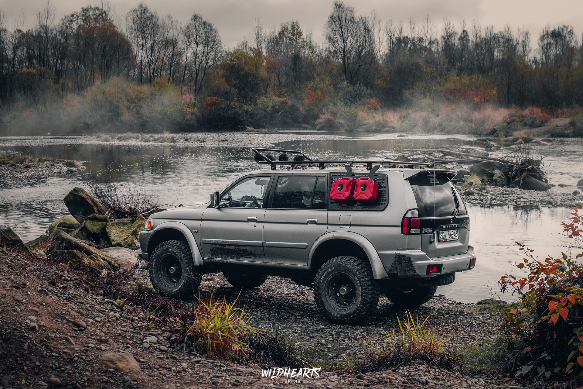 Akcesoria: wyciągarka Escape Value na customowej płycie, bagażnik dachowy z odpinanymi burtami, uchwyt na kanistry WHFxFW, szperacze Wesem 152, namiot dachowy WildCamp 160, stalowe progi.